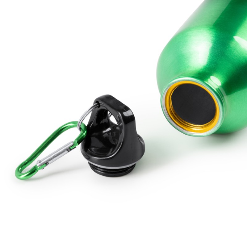 Φιάλη από ανακυκλωμένο αλουμίνιο με μονό τοίχωμα και ασορτί καραμπίνερ. Χωρητικότητα 400ml. Το καραμπίνερ είναι για την πιο άνετη μεταφορά της φιάλης, δεν συνιστάται για αναρρίχηση.