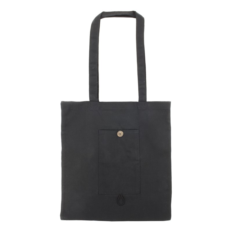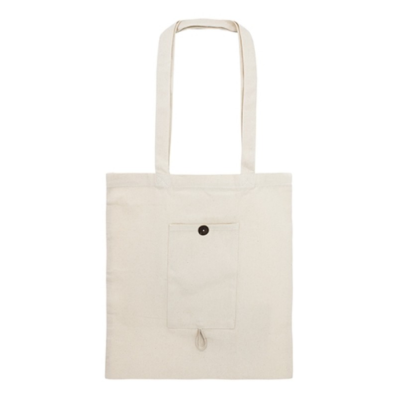 100% βαμβακερή πτυσσόμενη τσάντα με μακρύ διπλή λαβή. Άνετο για μεταφορά στον ώμο. Έχει μια τσέπη στο εξωτερικό, και διπλώνει άνετα. Εύκολο άνοιγμα χάρη στο κομψό ξύλινο κουμπί που παρουσιάζει στην εξωτερική τσέπη.