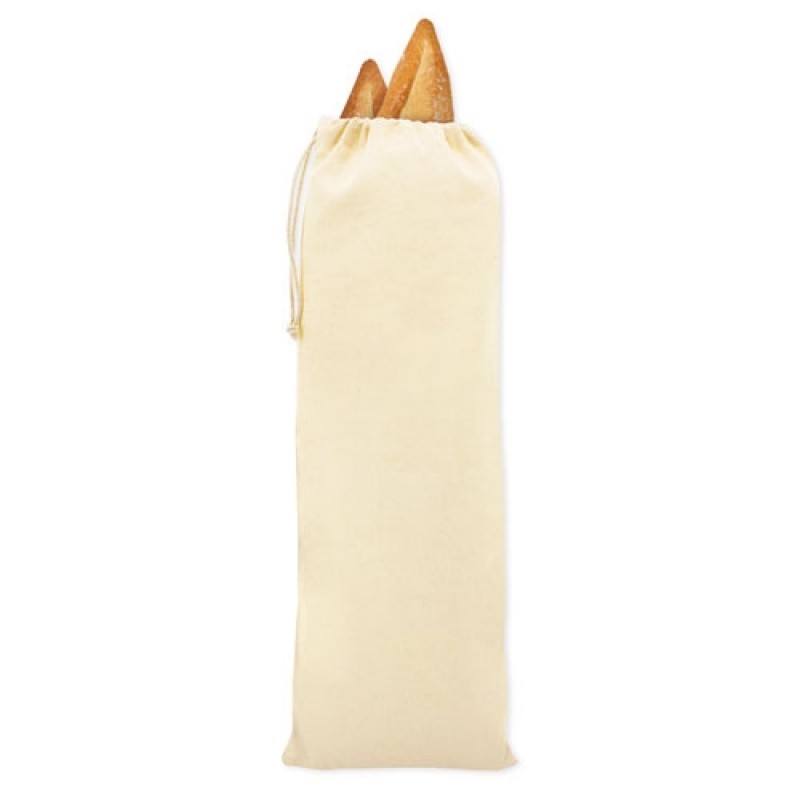 Τσάντα βαμβακερή για ψωμί με κορδόνι στο άνοιγμα, σε φυσικό χρώμα.